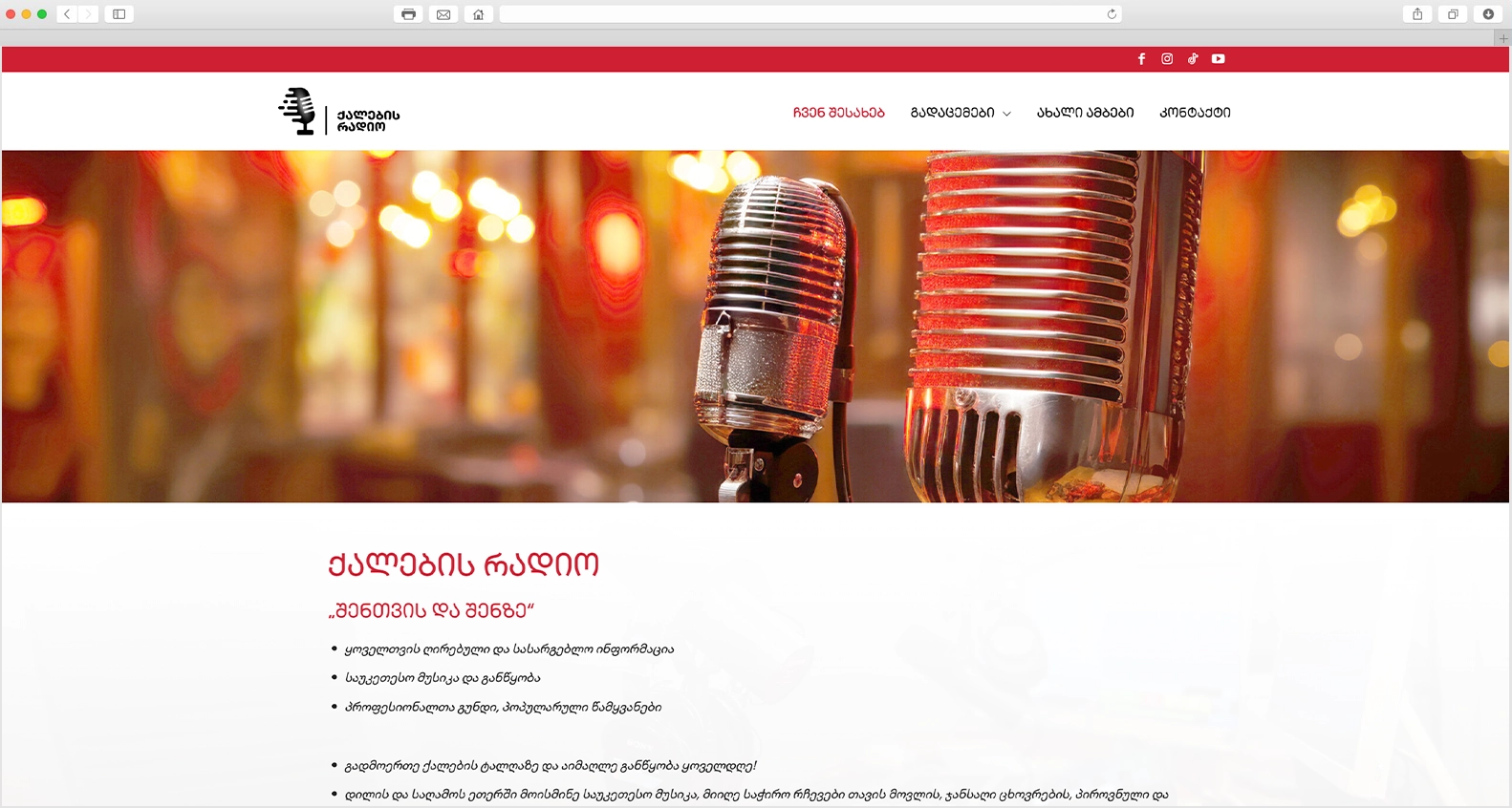 შესრულებული სამუშაო: საიტის დიზაინი, wordpress-ის თემის და პლაგინების იმპლემენტაცია, კონტენტ მენეჯმენტი, რადიო სტრიმინგის გამართვა